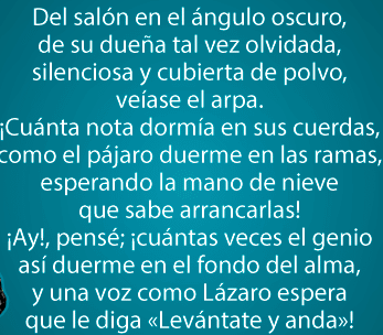 This short piece talks about music, of course and tells about a harp forgotten in a dusty corner of a room, and finished it comparing how our creativity sleeps deeply awaiting for our calling to create new worlds through art. The “Lazarus come out” of art is related to links and triggers that all we often go through.